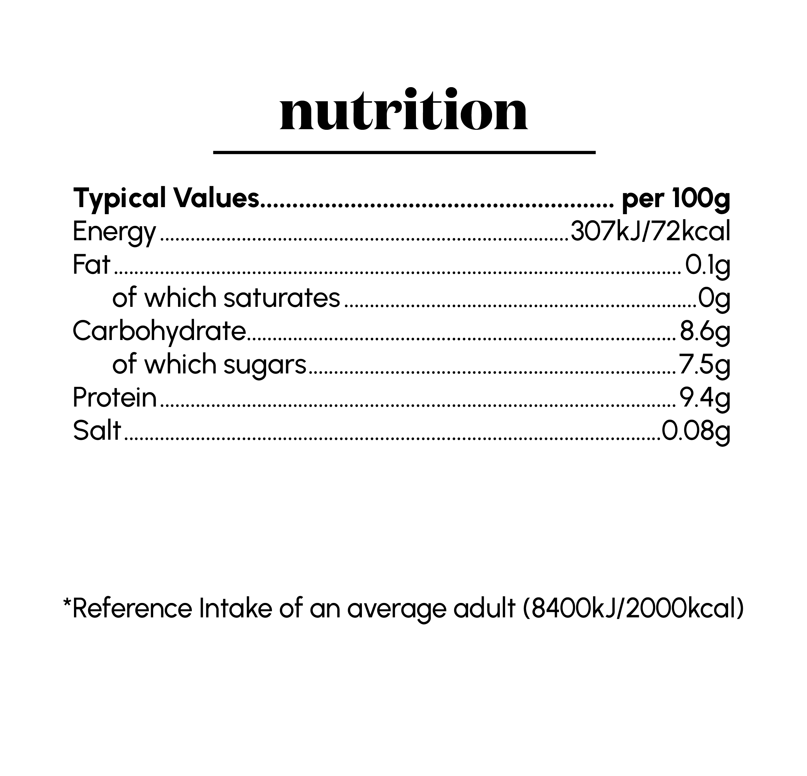 Stabiliser (Guar Gum), Lemon Juice Concentrate, Vanilla Pods (0.01%),