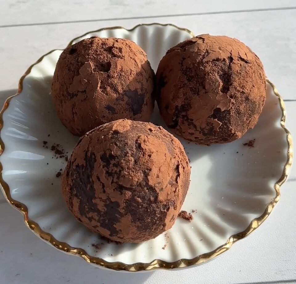 • Mix all ingredients together and form them into equal sized balls. Coat in more cocoa powder and enjoy
