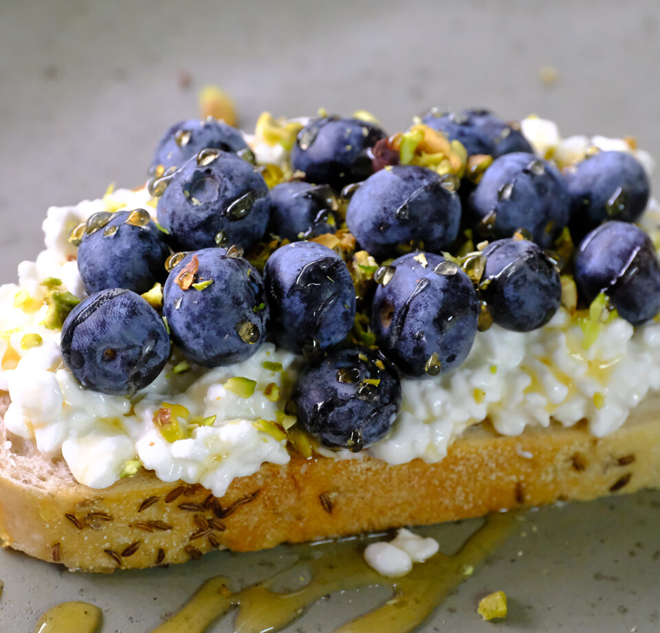 blueberry & pistachio cottage cheese toast