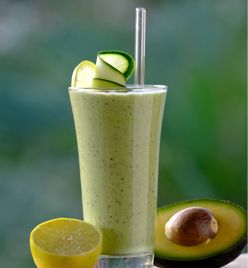 • Add the yogurt, cucumber, avocado, banana, honey, chia seeds, and mint to a blender.