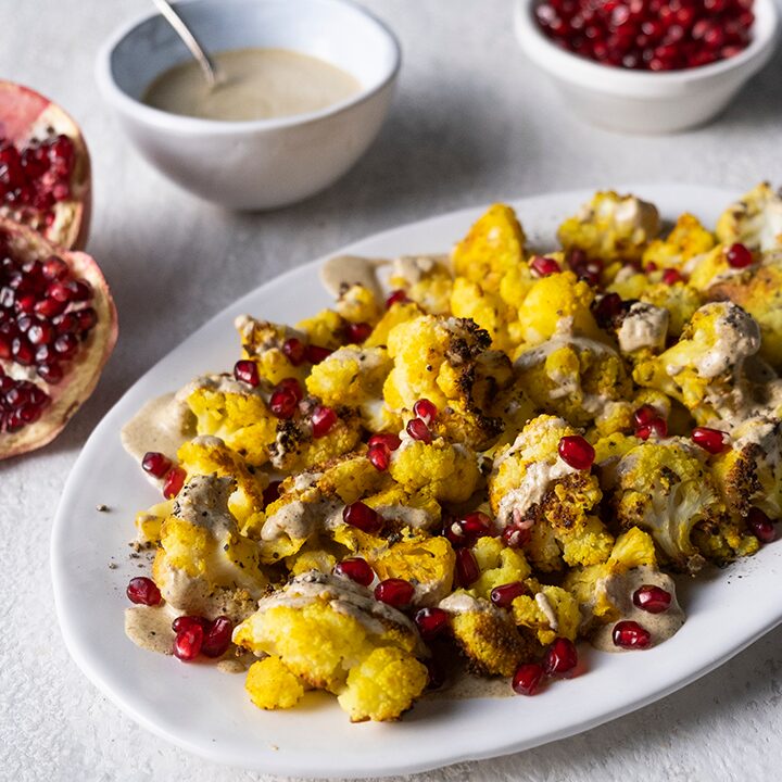 • Once the coconut oil has melted, remove from the oven and mix through the turmeric, fennel and cauliflower until well coated.