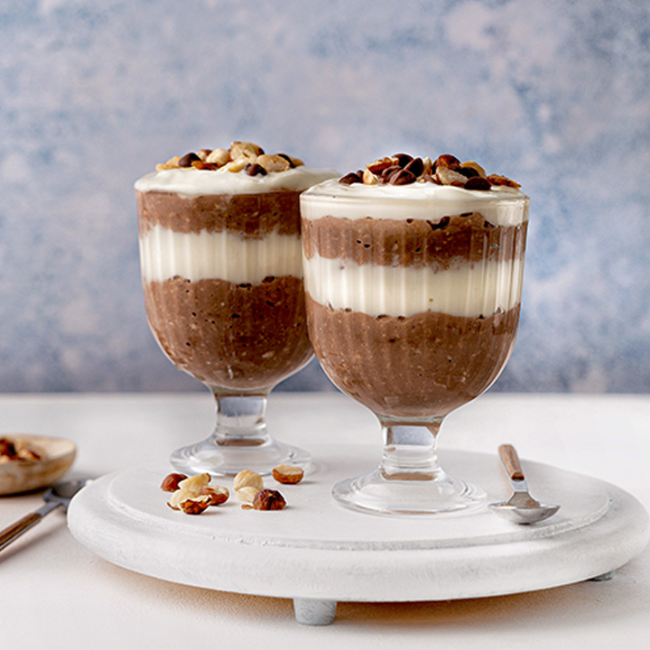 • Add a layer of the mocha oat mix to a glass or jar, a layer of yogurt and repeat.