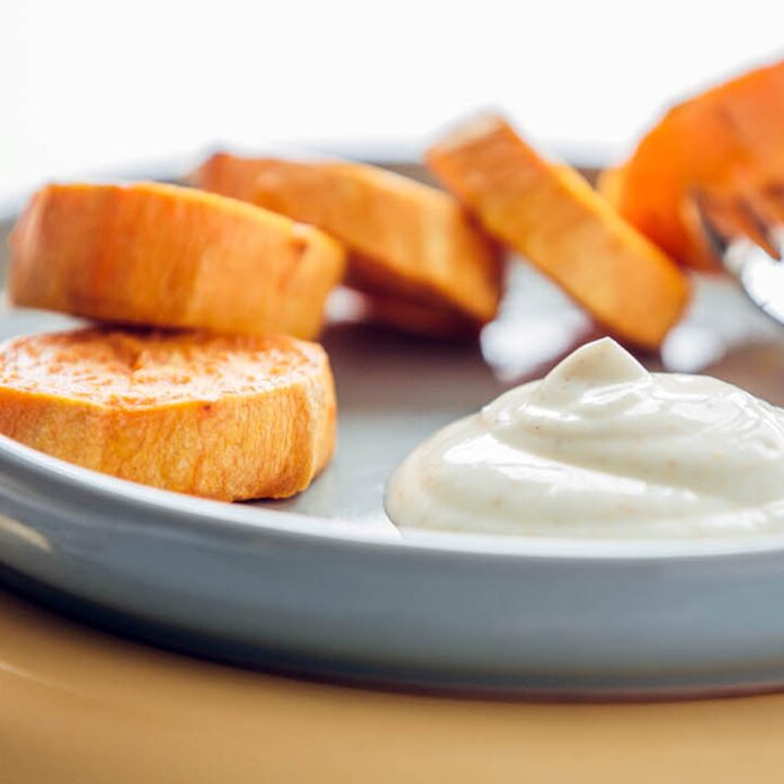 • To make the yogurt dip, combine the yogurt and chilli powder in a bowl